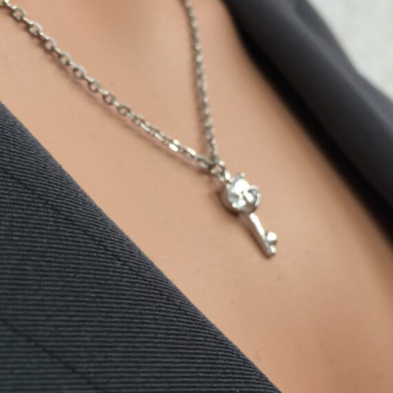 Mistress Necklace Original Male Chastity Cage Keyholder Goddess Necklace W Silver Rhodium Heart Key Stainless Steel Chain Cz Cubic Zirconia