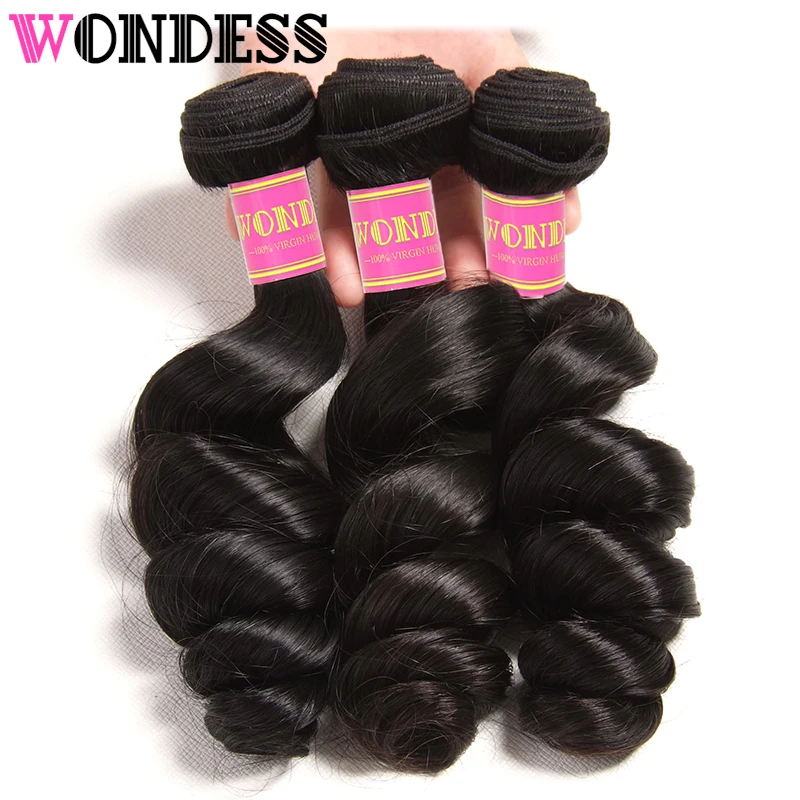 Wondess Cambodian Hair Loose Wave Bundles 3 Pieces Unprocessed Virgin Hair Natural Color Human Hair Weave Bundles 16-26inch